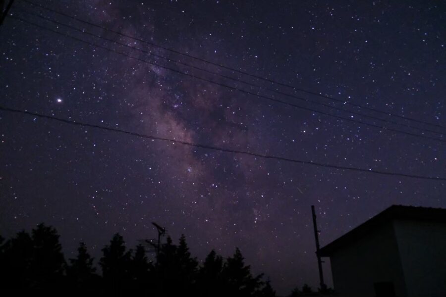 肉眼で見る以上に写っている煌めく星々、空を裂く天の川、閃光のような流星。
