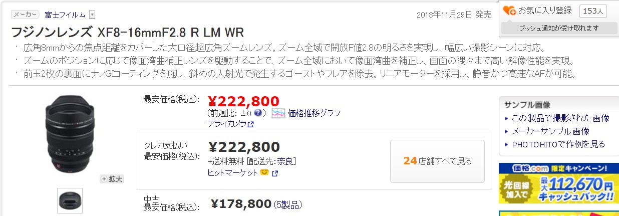富士フイルムの広角レンズと言えば「XF10-24mm」があるんですが、星景写真家の人は描写力なら圧倒的に「XF8-16mm」が良いと言ってました。