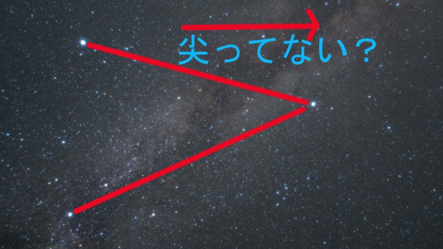 夏の大三角ですが、三角は三角でも1つ「アルタイル」だけ尖った(他の2つに比べて離れてる)ような形をしています。