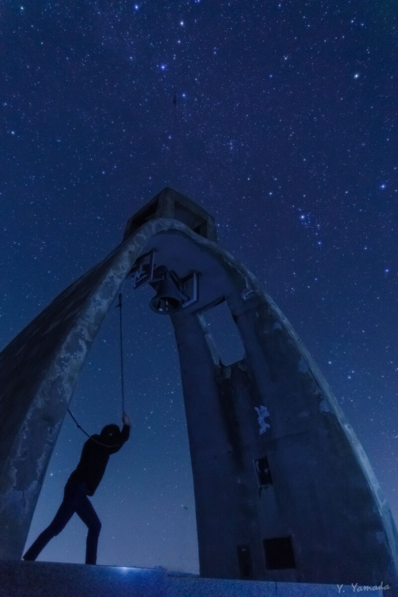 撮っていると、ひとりの青年が鐘を鳴らそうとしました。