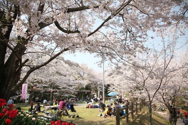 池の周りにずらっと立ち並ぶ桜たち。綺麗に整えられた公園には2000本の桜が咲いているそうです。
