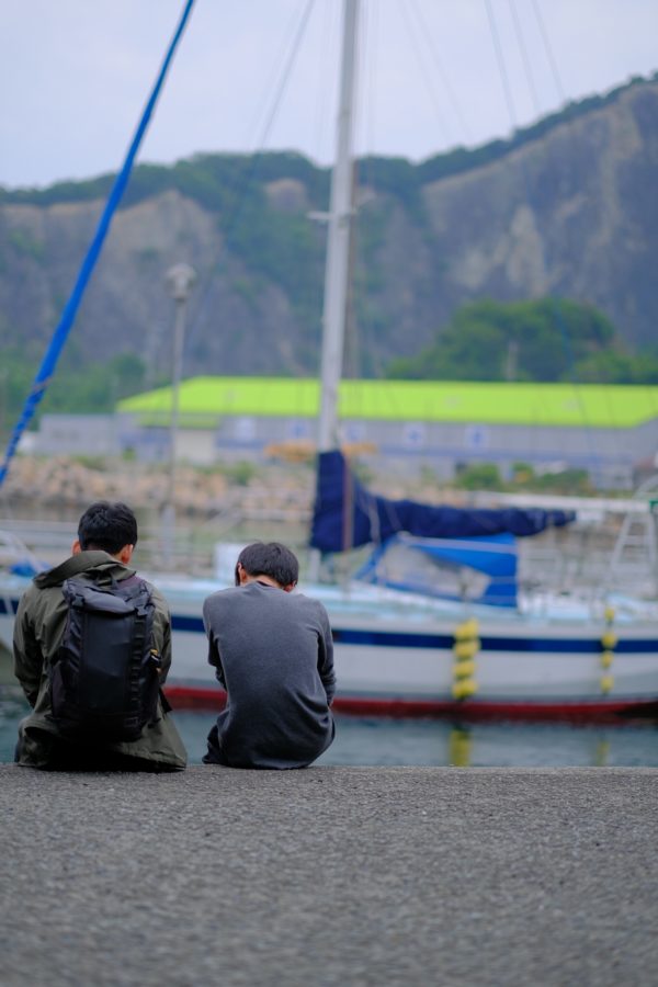 帰りの日も船着き場でカニを探したり、釣りのおじさんにプレッシャーを与えたり、写真を撮ったり。