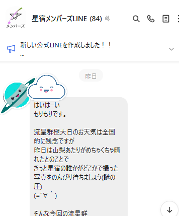 初心者向け天体観測ラジオなどで積極的に発信されているもりもりさんがメンバーLINEに流した内容がこちら。
