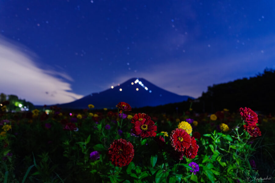 場所は富士山、近くには向日葵と百日草が咲いていました。とっても見頃でした!