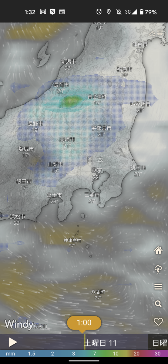 これだけ雲がおおいので改めて予報を確認しました。