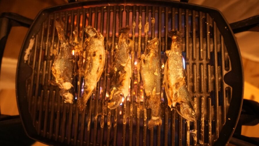釣った鮎はその場で下処理をしていただきBBQで塩焼きや別途唐揚げに調理してもらいます!