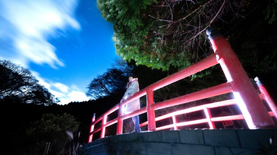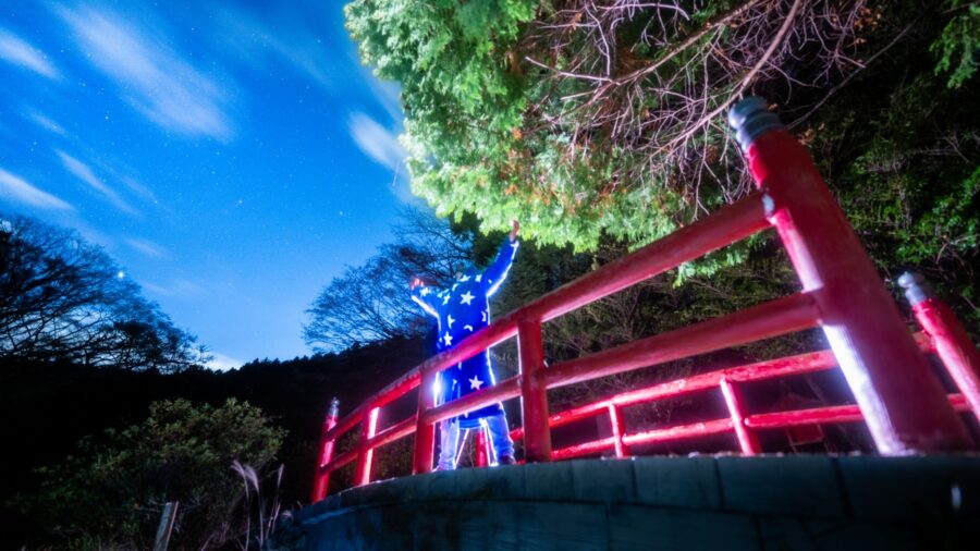 池に落ちないよう気を付けつつ、綺麗な橋で神様ごっこをしていたらちょうど晴れて星が見えてきました✨