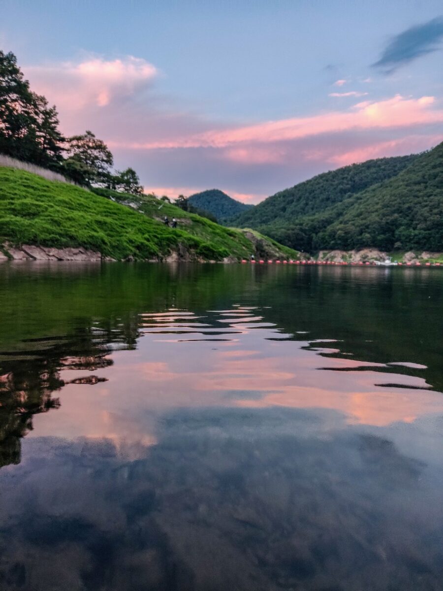 あと、ダム湖に反射する夕焼けも綺麗だったんですよね。