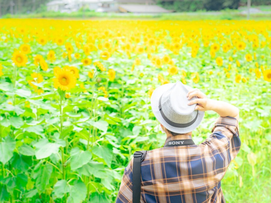 このひまわり畑の横には川が流れていて子どもが遊んでいたりするんですよ。