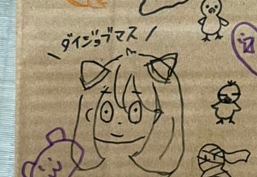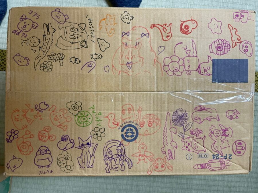 夜中何人かが「エセ芸術家 ニューヨークへ行く」というお絵かきボードゲームで遊んでいたのですが、そのゲームの待ち時間に犠牲になられたのがこのダンボールさん。