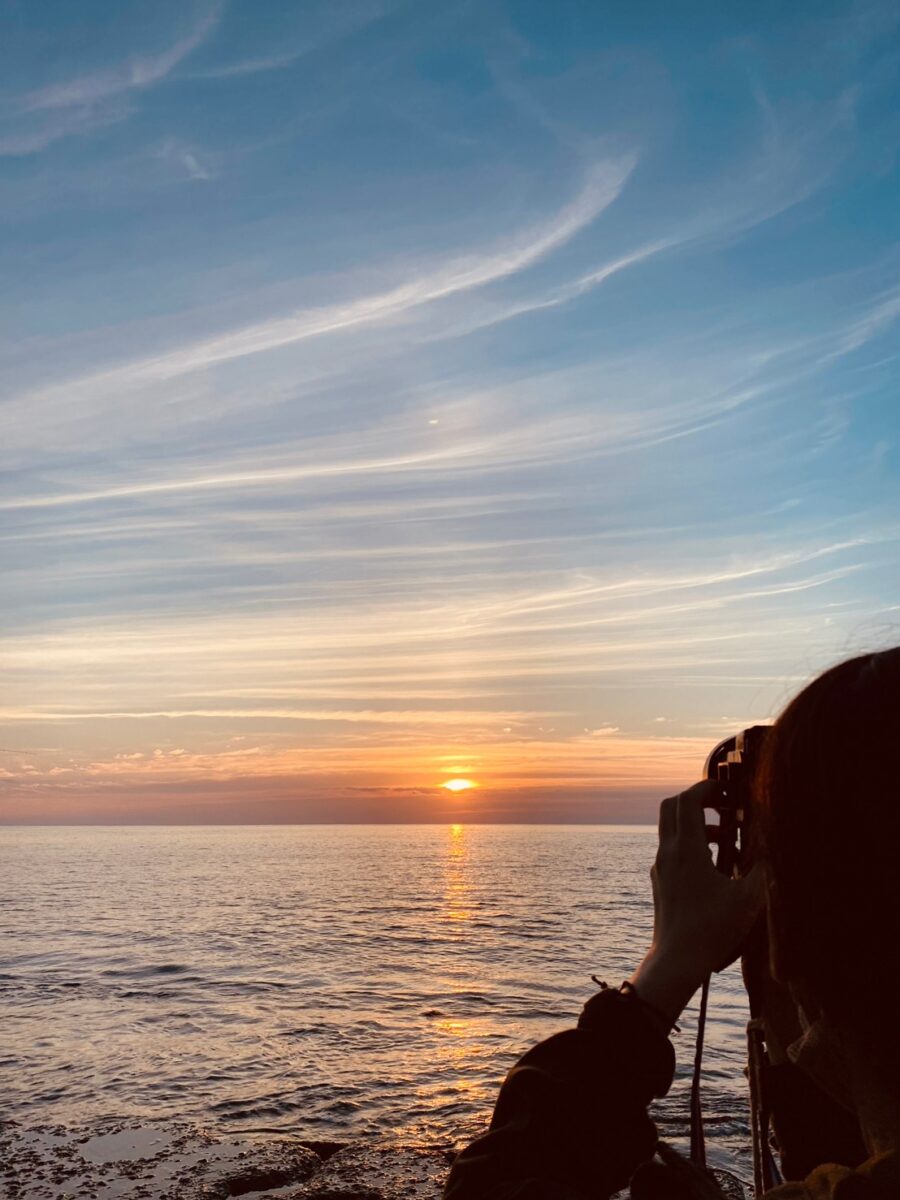 海の上にオレンジ色の道が広がっていくアニメのような朝日は必見です!