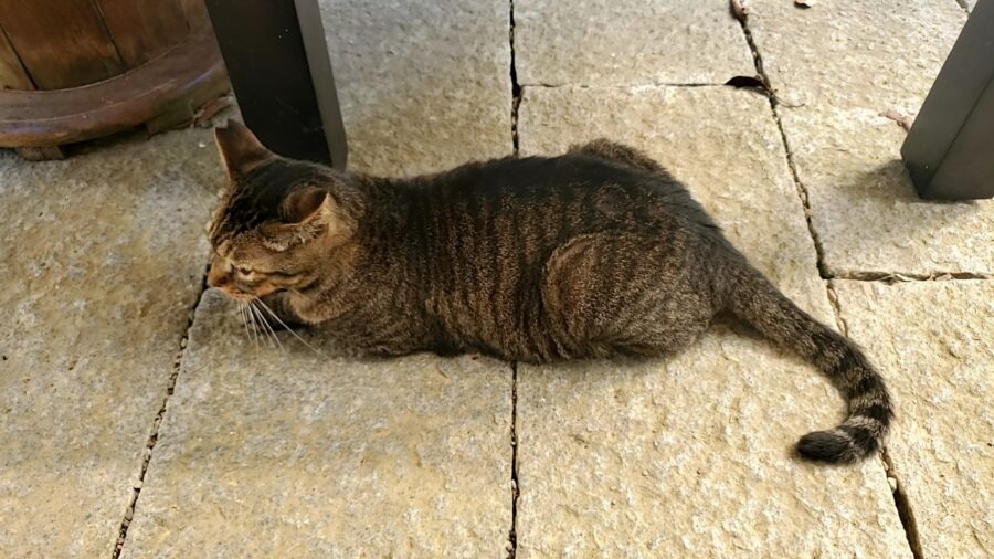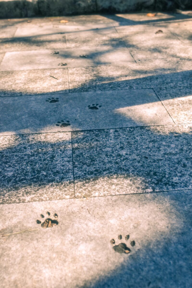 どれだけ踏みしめたら石畳に足跡が残るんでしょうね、、1匹しかいなかったので多分この子の仕業です。