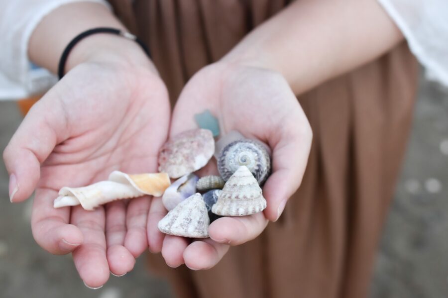 あのユイさんは海辺で貝殻を拾っていました!(売るのだとか)