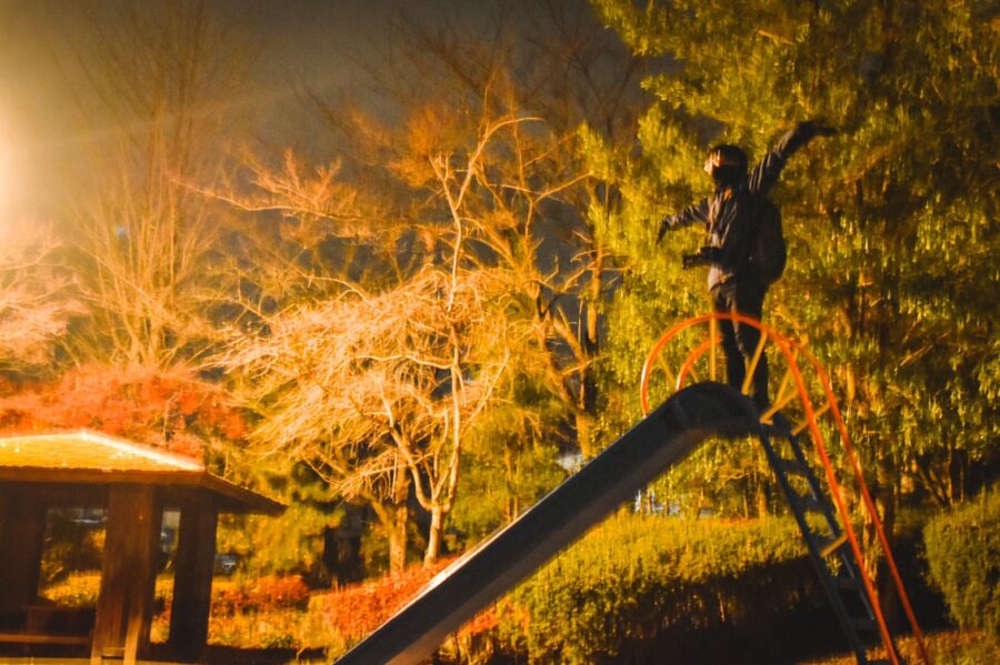 滑り台の上だとより秋を感じられるんでしょうか。他に人がいなくてよかったです。