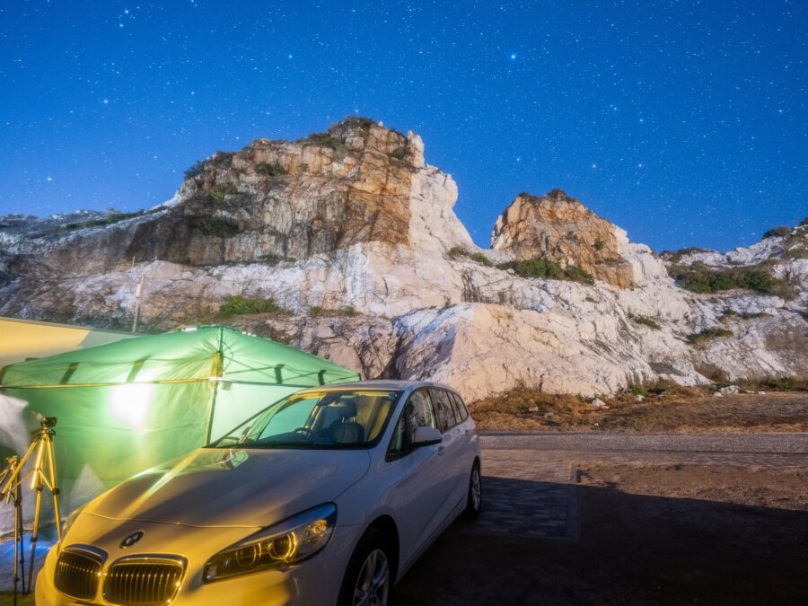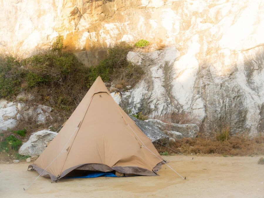 白崎海洋公園の白壁の下に立てるテントとかもうキャンプ美の完成形じゃないでしょうか。