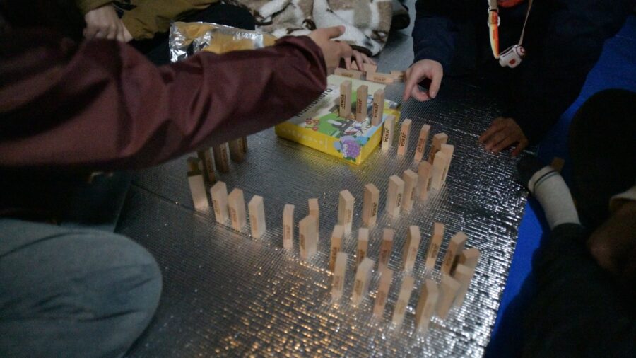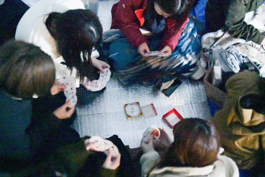 車に酔わないよう酔い止めも用意して、凍えないよう時にはテントを立てカイロはいくつでもセルフサービス、ボードゲームだってお菓子だって持っていきます。