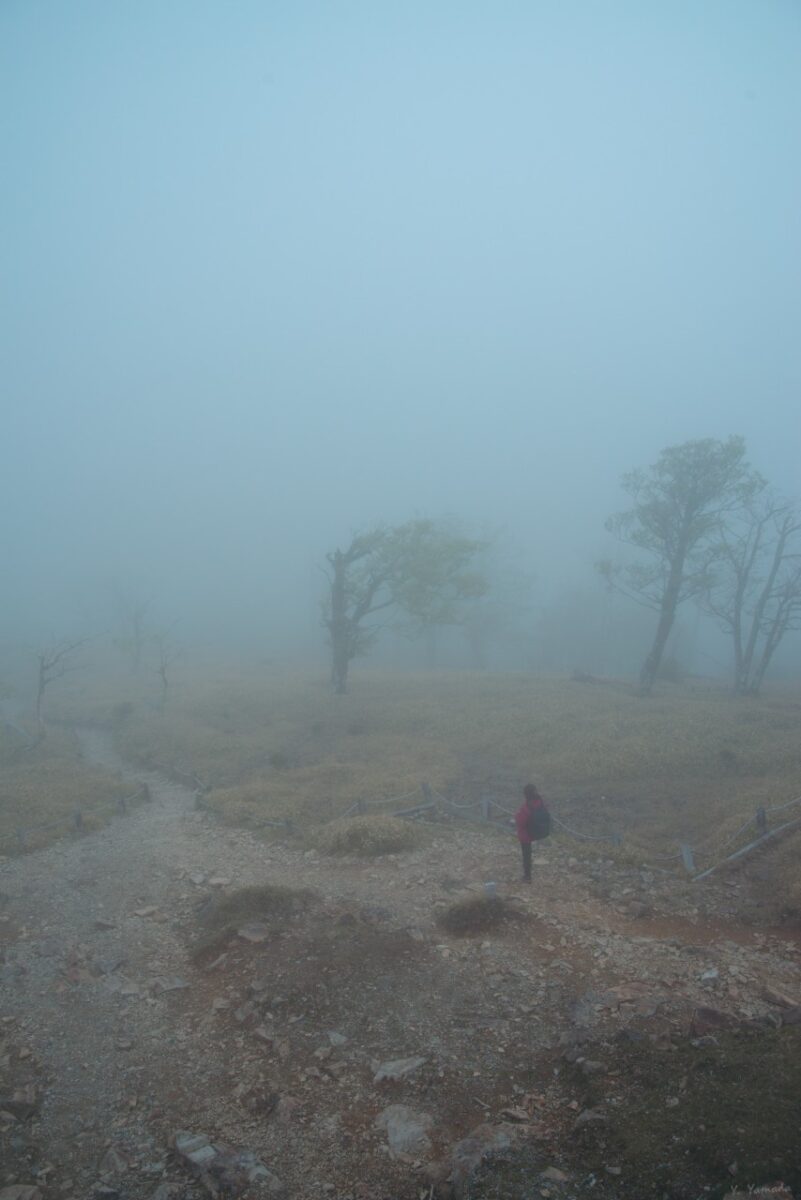 そんな感じで大台ケ原の駐車場に着いたときはもう思いっきり雲の中。