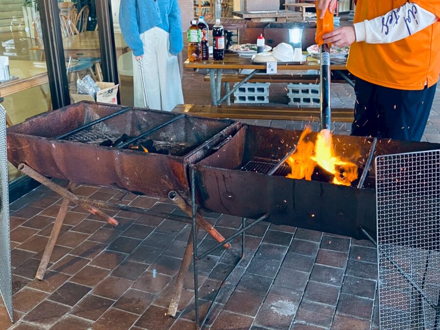 火がなかなか付かないということで職員さんが火炎放射器を使って火をつけてくれました!笑